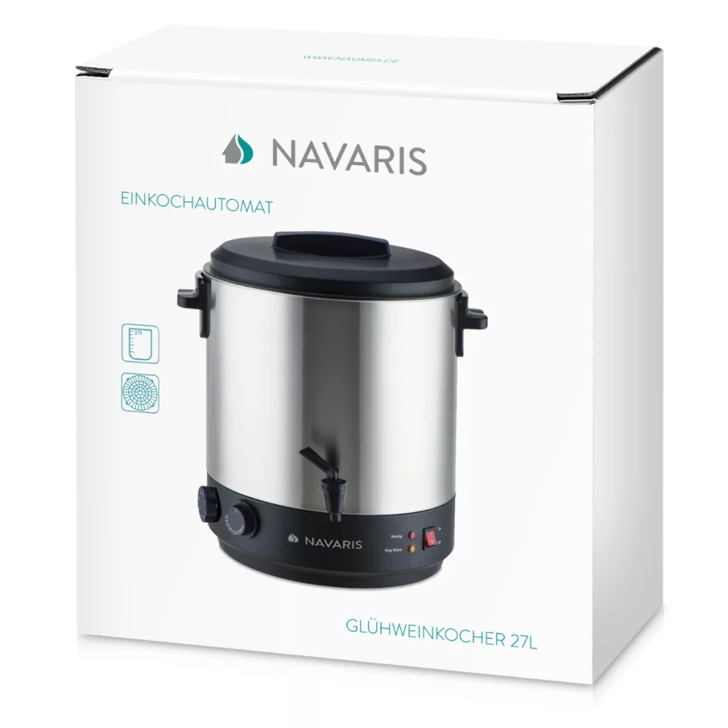 Fierbator electric Navaris, 27 L, pentru vin fiert si conservare, gri, otel inoxidabil/metal