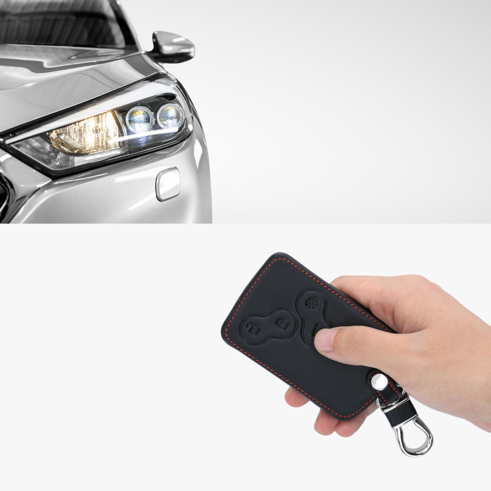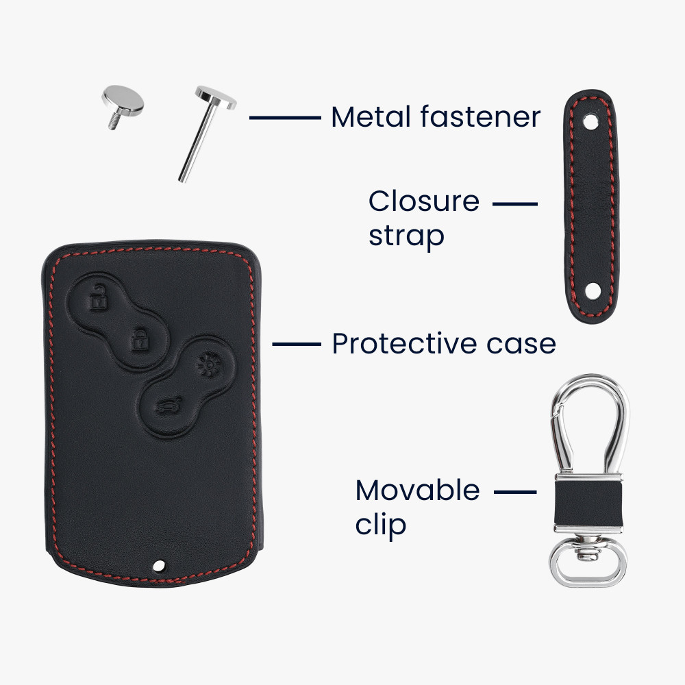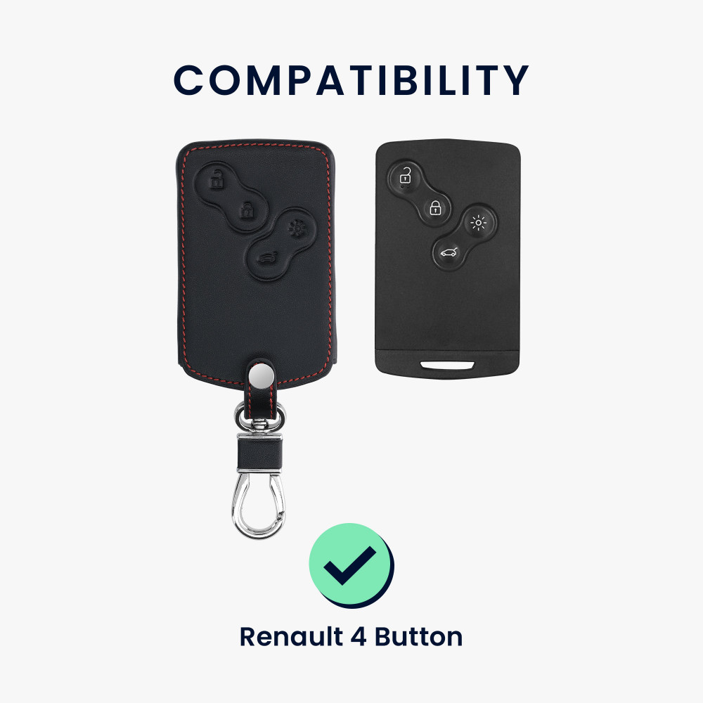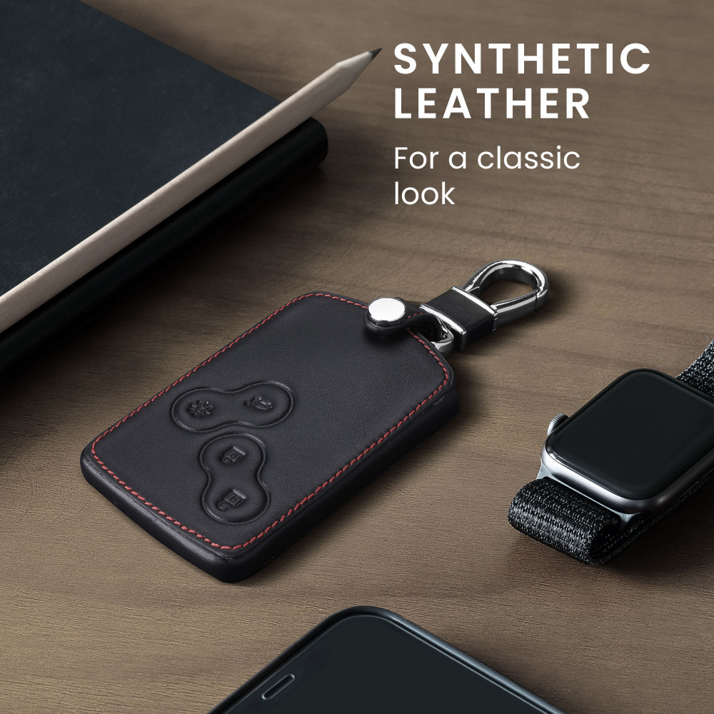 Osłona kluczyka do samochodu Renault / Dacia - 4 przyciski - Keyless Go, ekoskóra, czarna, 46356.01