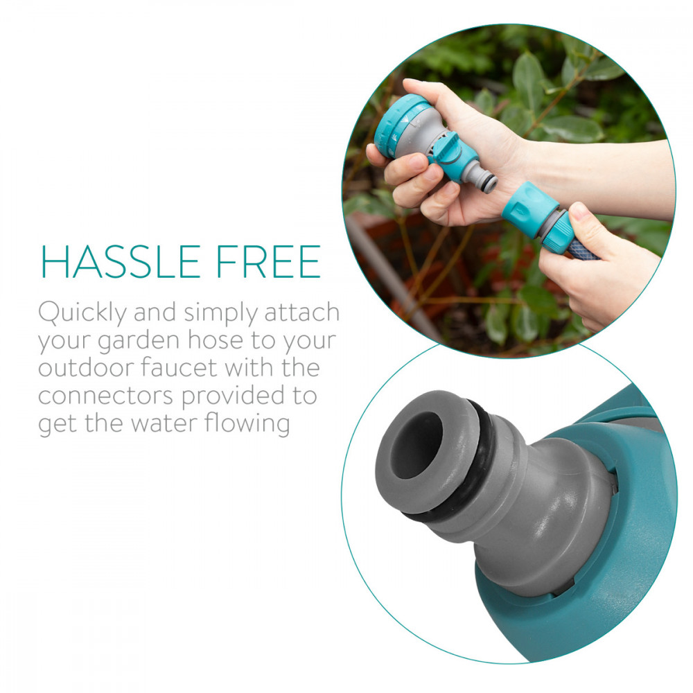 Praktykuj swoją pasję do ogrodnictwa dzięki temu zestawowi końcówek do węża wyposażonych w złącza ułatwiające konfigurację.