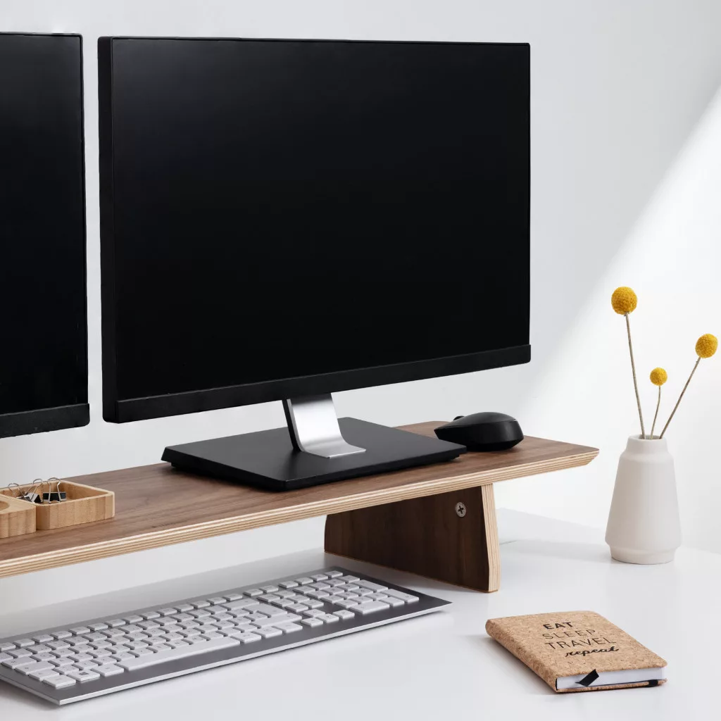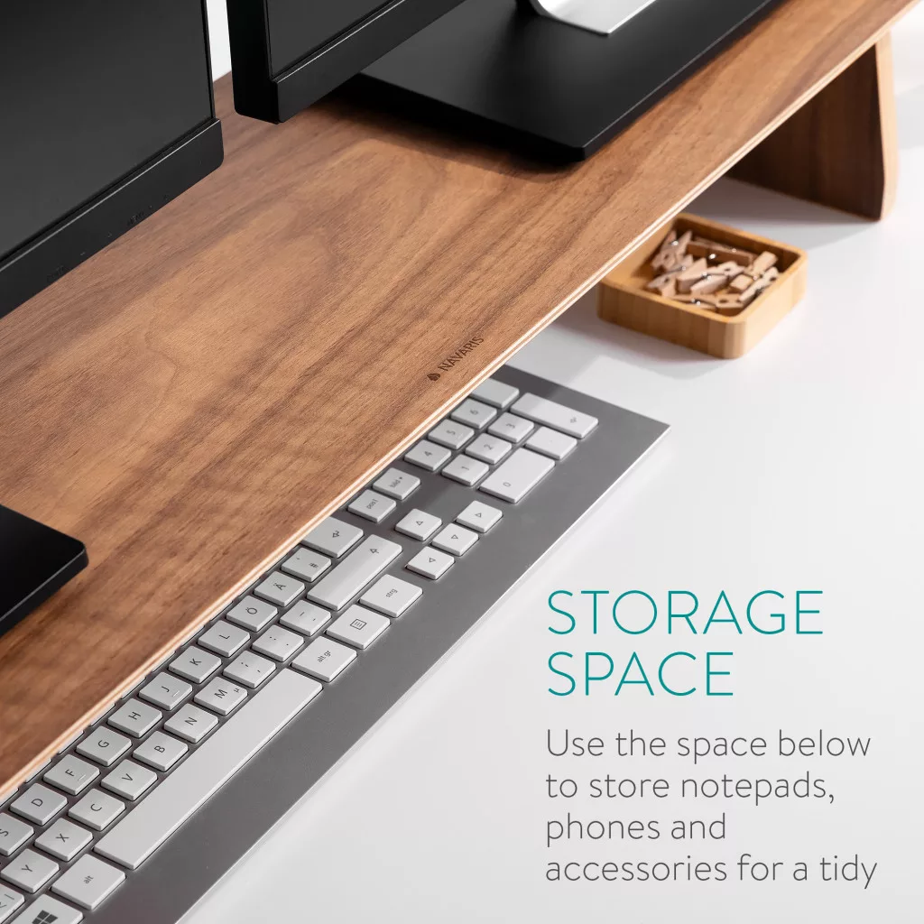 Suport dublu pentru monitoare Navaris, 109x23x12 cm, 50 kg, maro, lemn