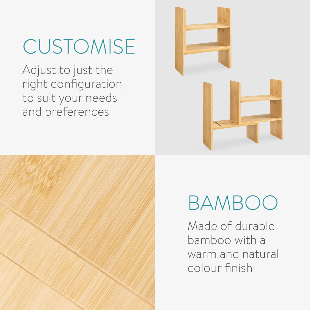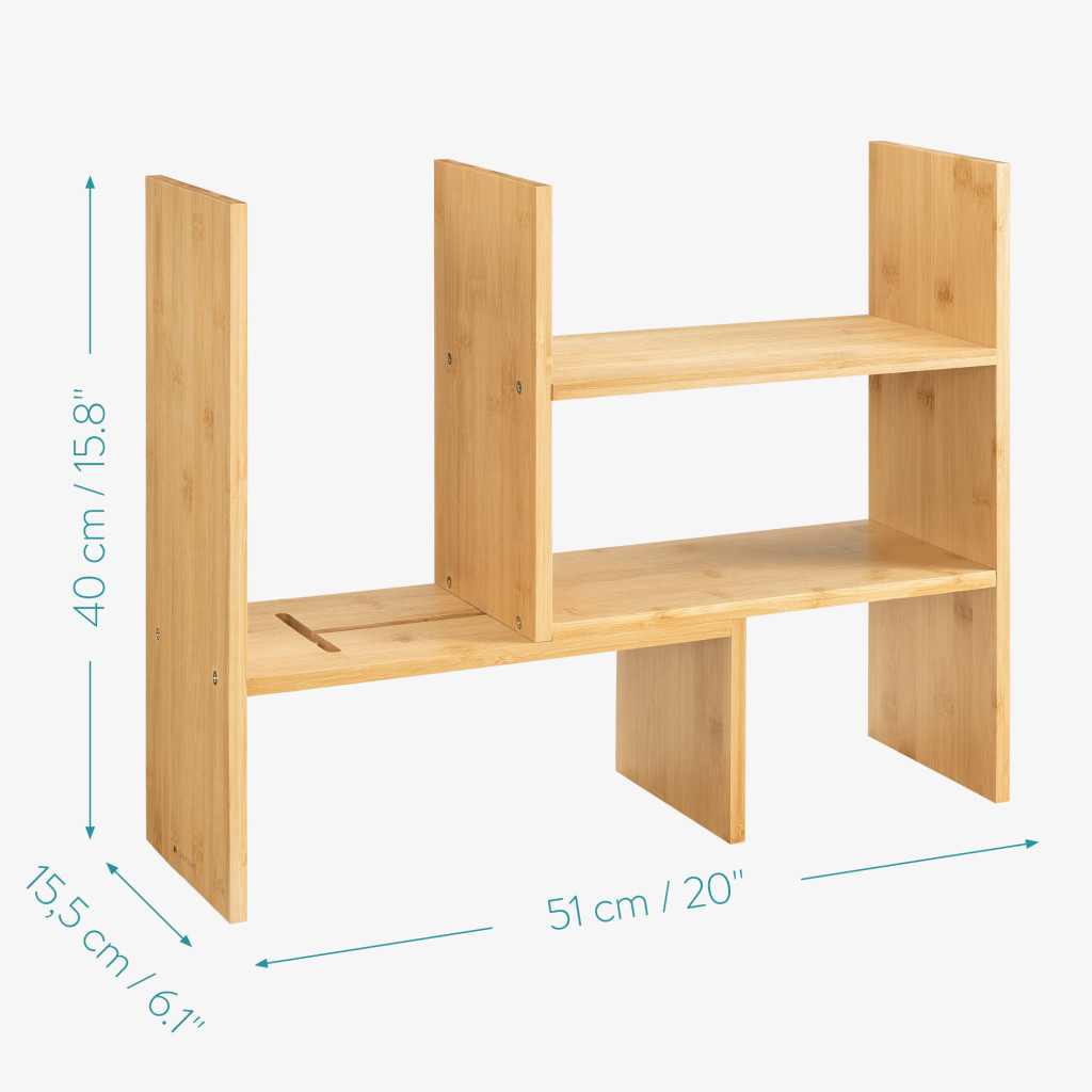 Raft organizator birou reglabil Navaris, 2 sectiuni, 64x15.5x40 cm, colt sau blat, maro, bambus