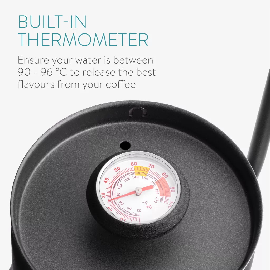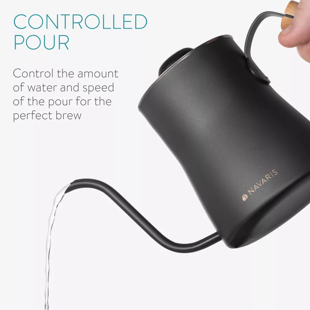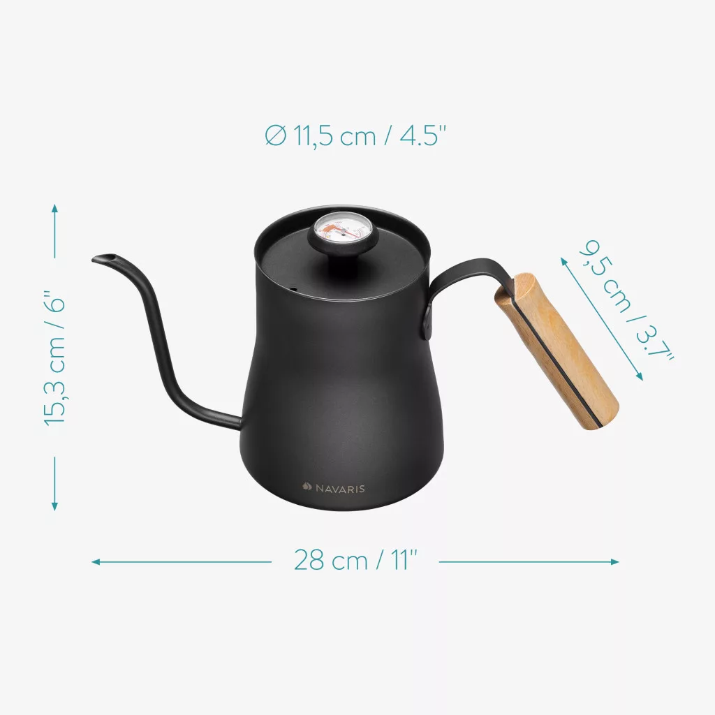 Fierbator cafea Navaris pour-over, 1000 ml, termometru integrat, argintiu, lemn/otel inoxidabil