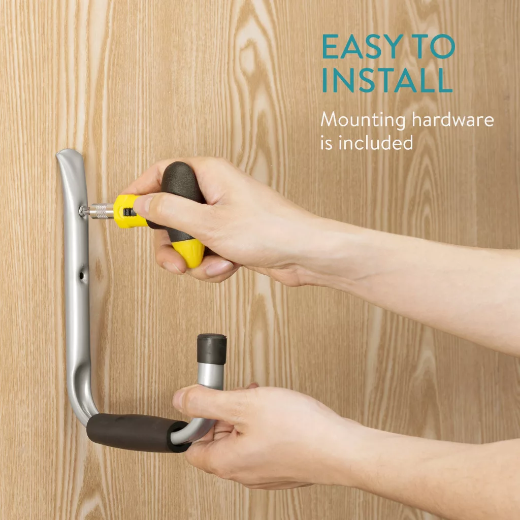 Set 12 carlige depozitare Navaris, tavan/perete, garaj, kit suruburi, negru, otel