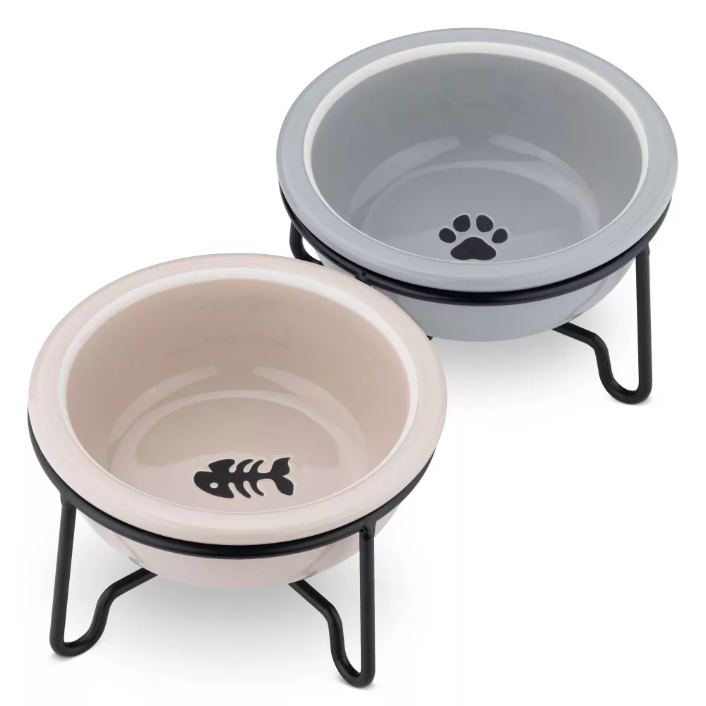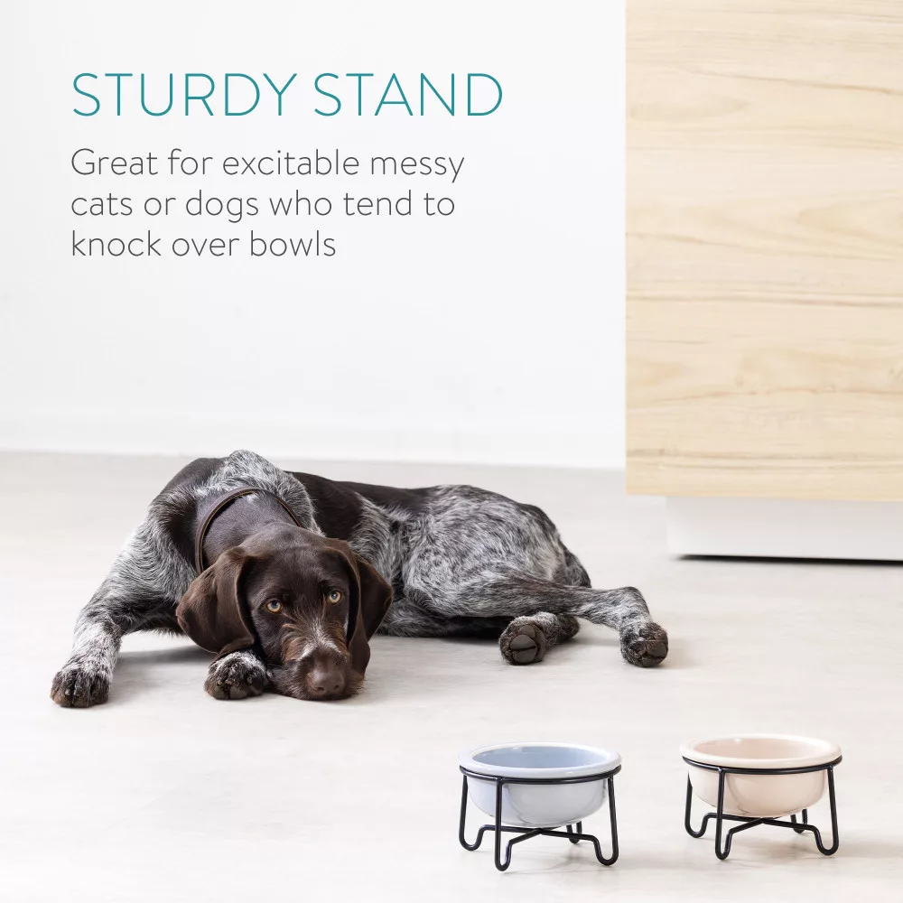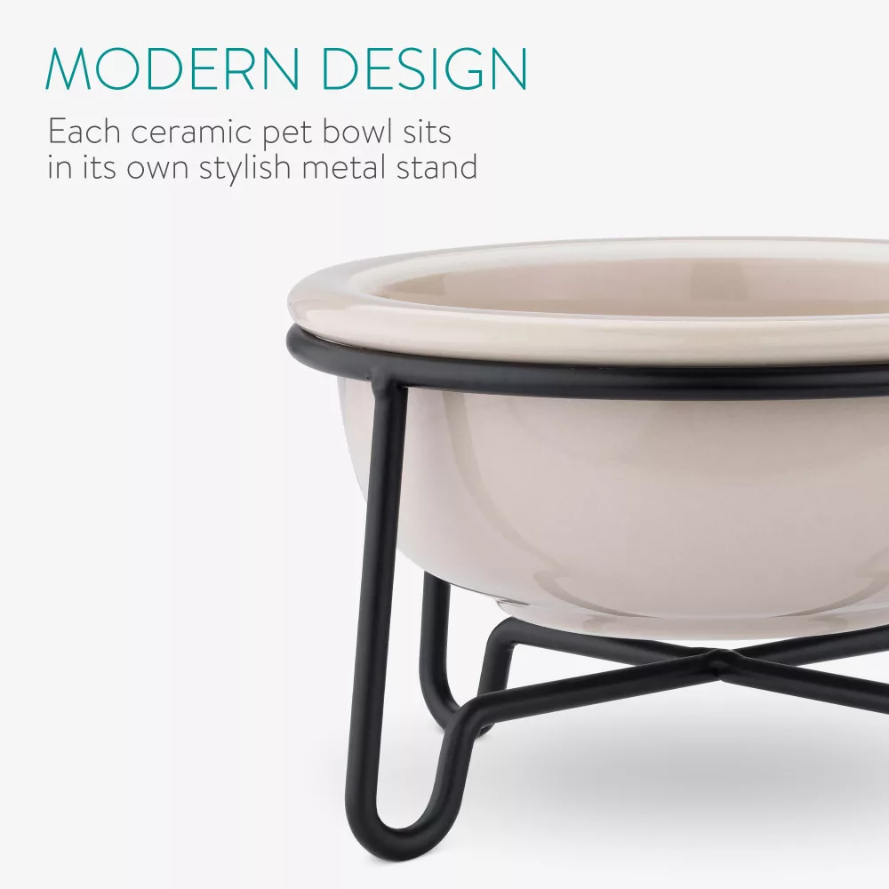 W przeciwieństwie do plastikowych misek, które mogą plamić i niszczyć z czasem te miski przetrwają próbę czasu. Ceramiczna i metalowa konstrukcja sprawia, że zarówno stojak, jak i miski są trwałe i trwałe.