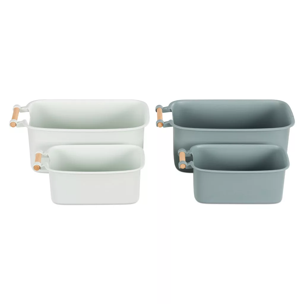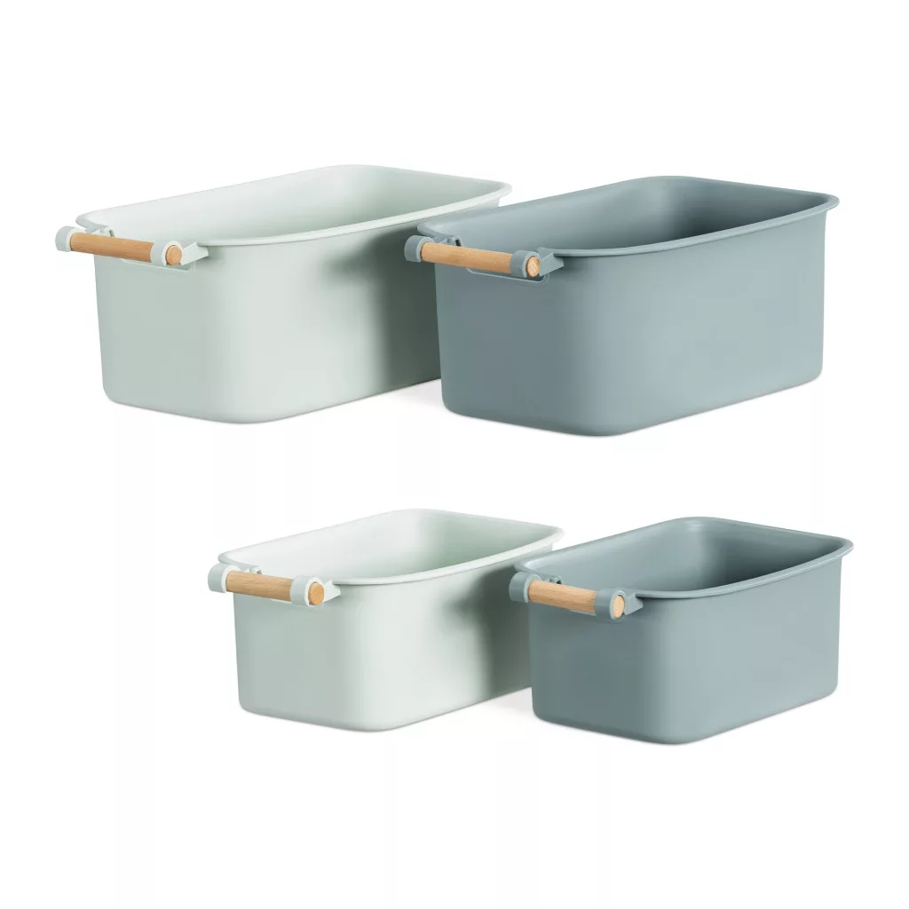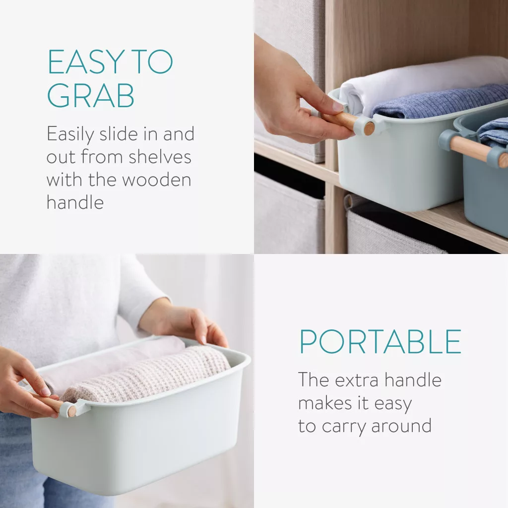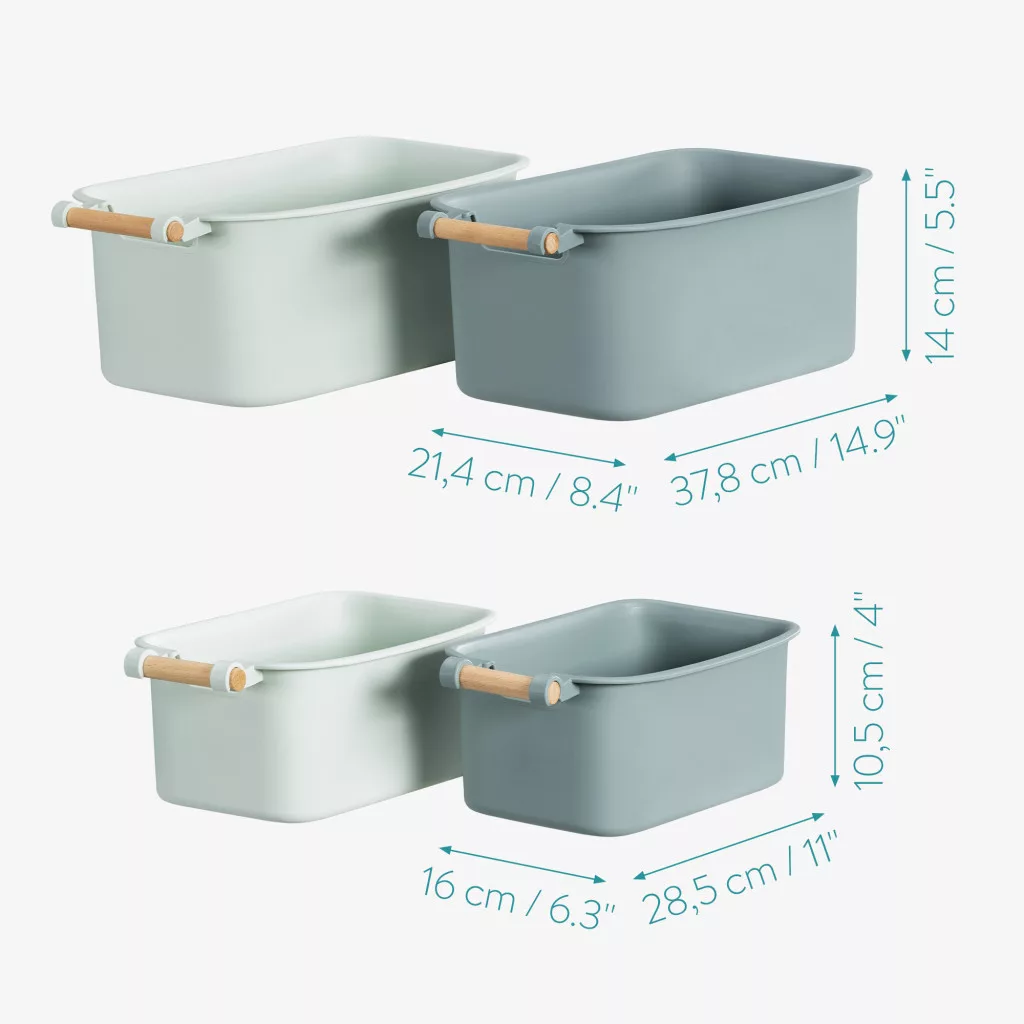 Set 4 cutii depozitare Navaris cu maner din lemn, 37, 8x21, 4x14 cm si 28, 5x16x10, 5 cm, maro, lemn
