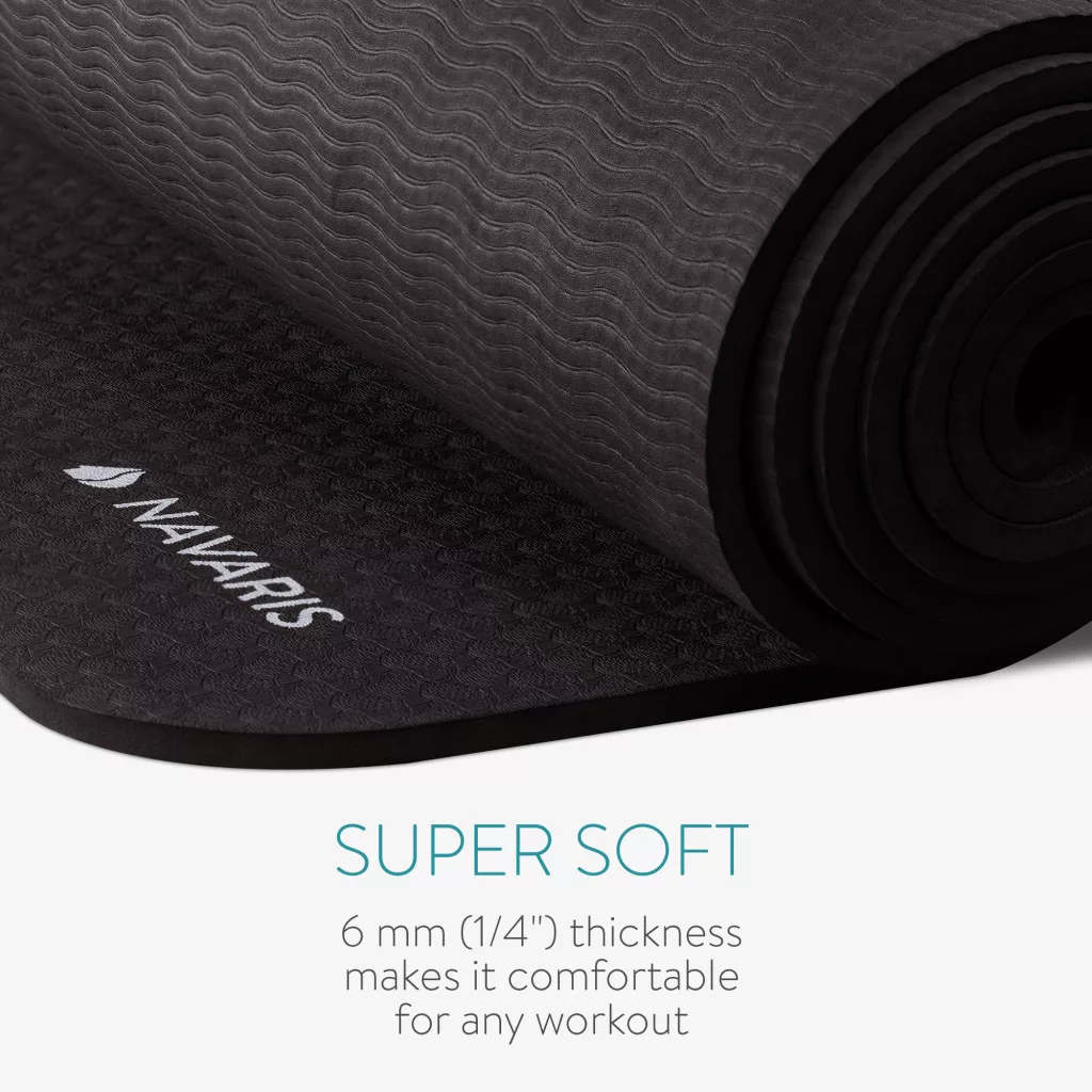 Saltea yoga XXL Navaris, 180x120x0.6 cm, extra spatiu, antiderapanta, negru, TPE