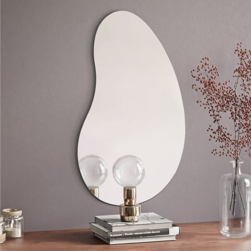 Oglinda decorativa ondulata Navaris, fara rama, design squiggle, 75x52 cm, multicolor, sticla/metal