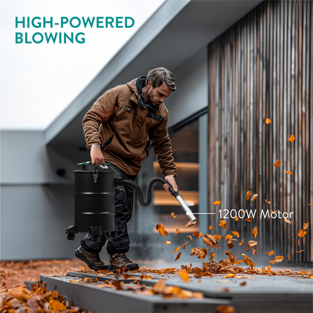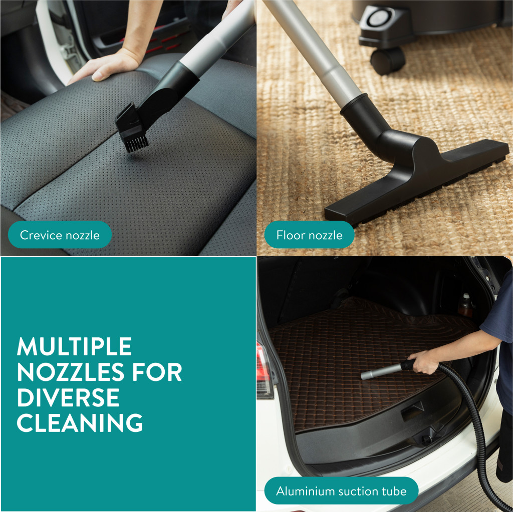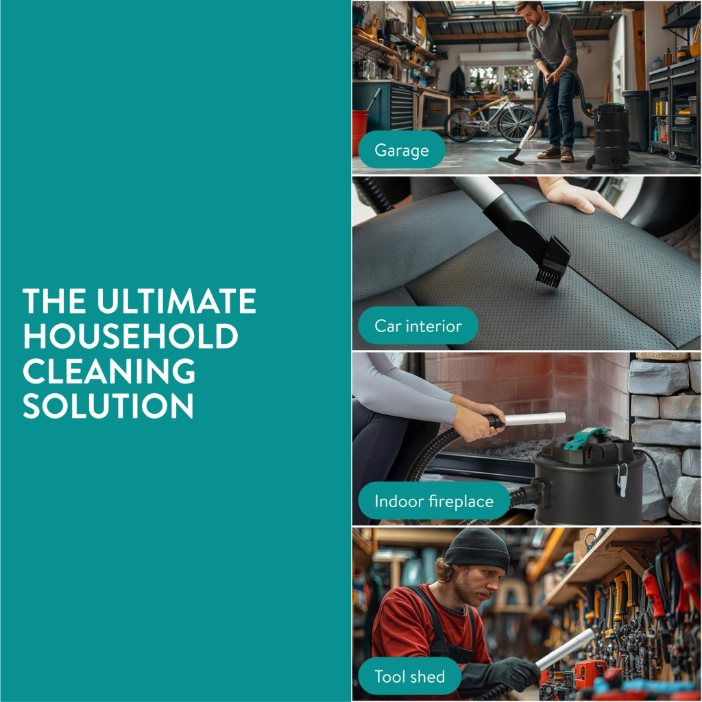 Aspirator pentru cenusa Navaris, cu roti, 20 L, 1000 W, filtru HEPA, 27x27x49 cm, negru, otel