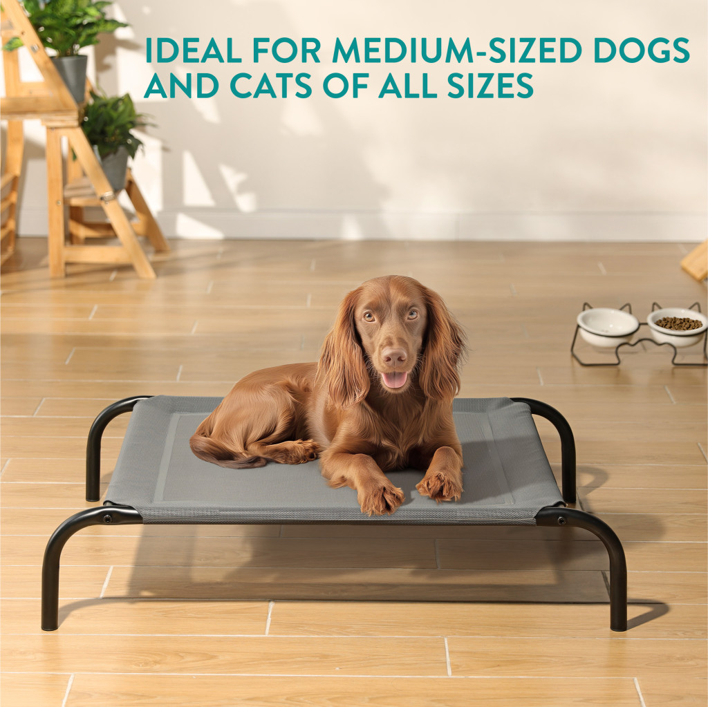 Potrivit pentru câini și pisiciCu o suprafață de 90 x 64 cm și o capacitate maximă de susținere de 25 kg, acest pat este ideal pentru animalele de companie de talie medie, fie că este vorba de câini sau pisici. Înălțimea patului este de 20 cm.