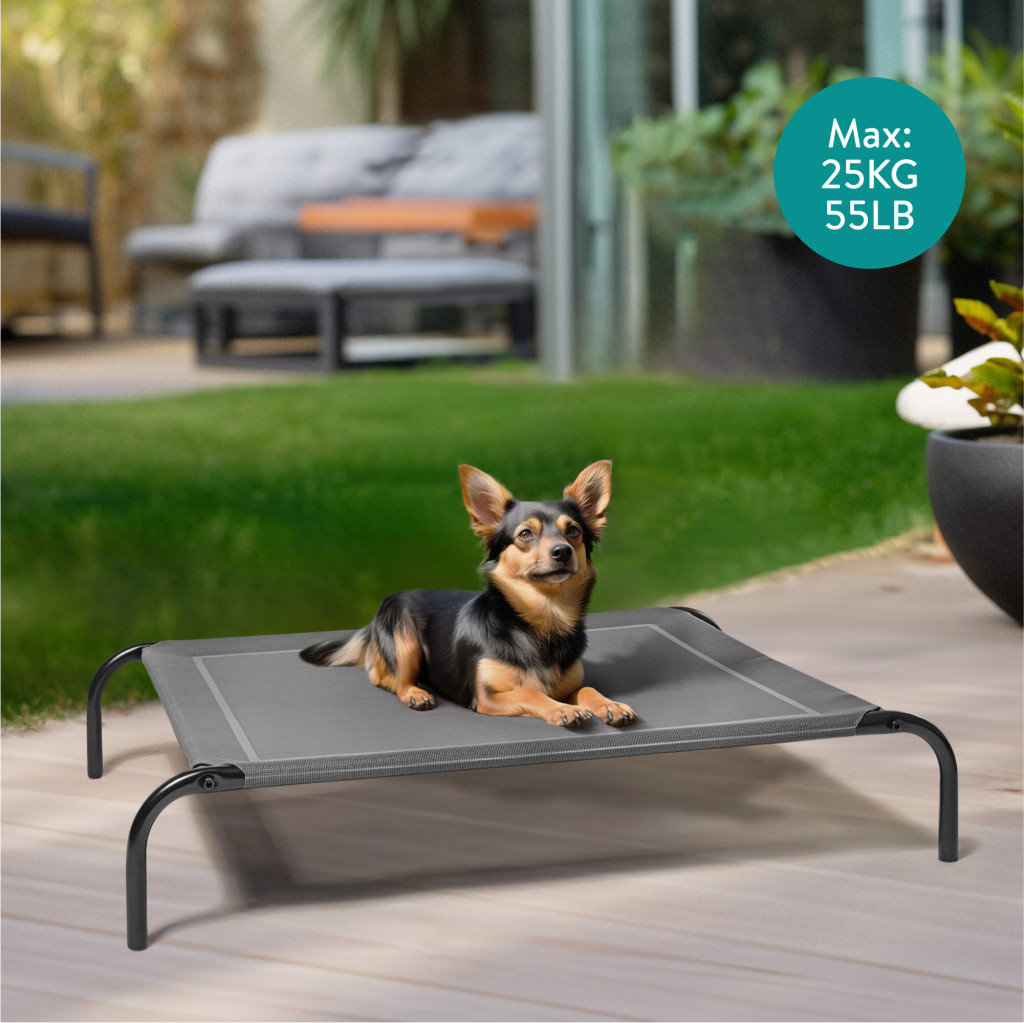 Navaris pat ridicat pentru câini – dimensiune S – 90x64x20 cm – ideal pentru vară – cadru din metal, material textil respirabil – potrivit pentru câini și pisici de talie medie