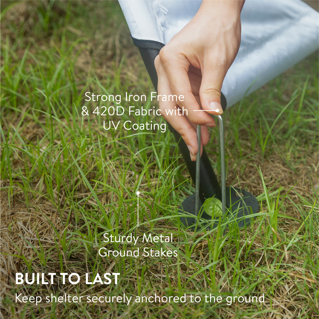 Solidna konstrukcjaNamiot podtrzymują mocne rurki, które łatwo łączyć ze sobą. Dzięki dołączonym kołkom można go stabilnie zamocować w ziemi, zapewniając stabilność nawet przy wietrze lub miękkim podłożu.