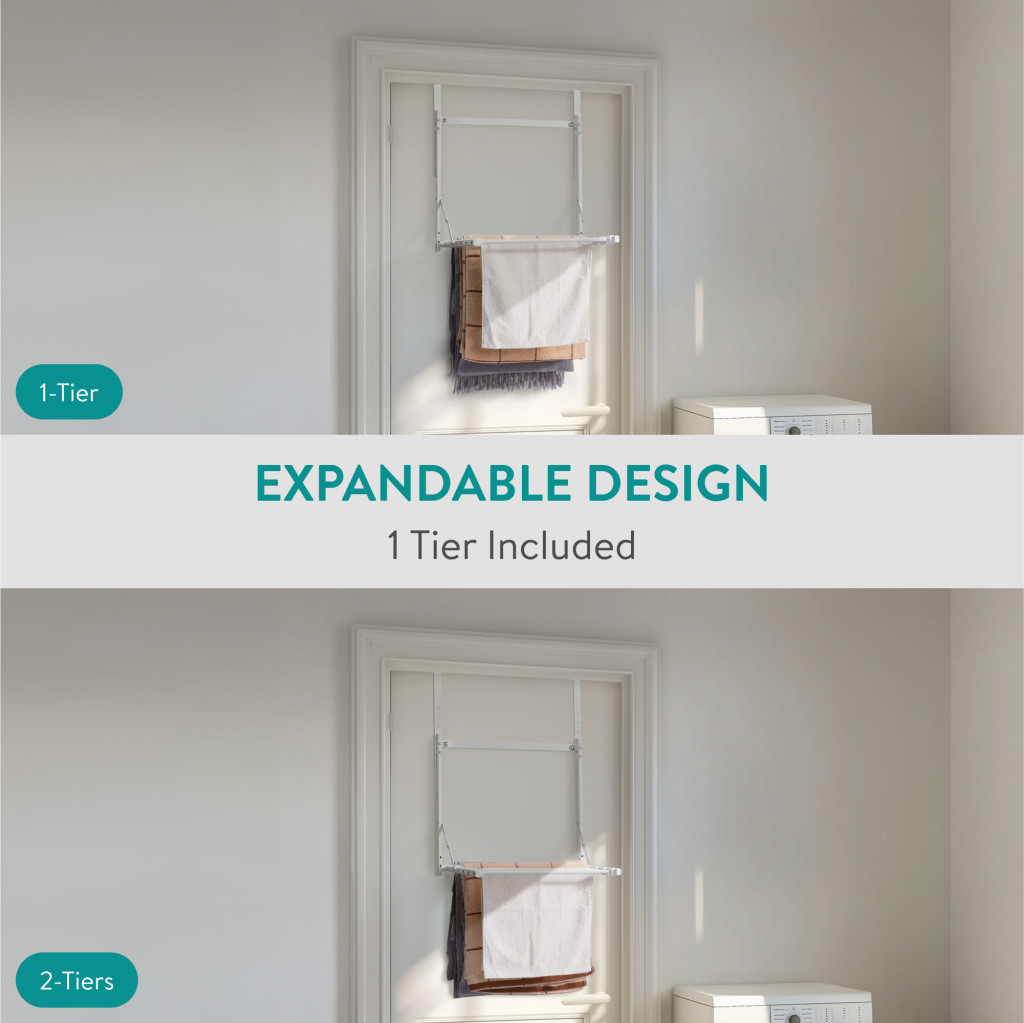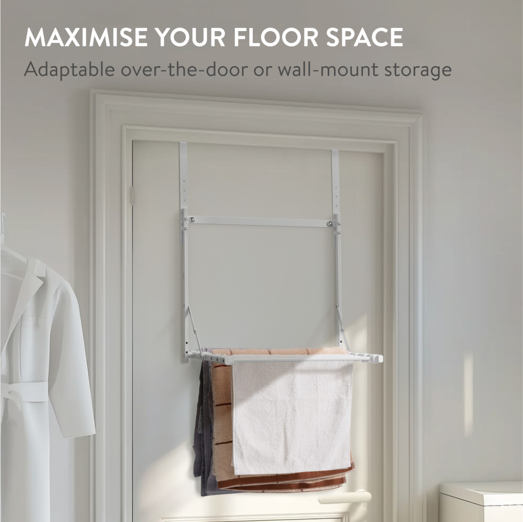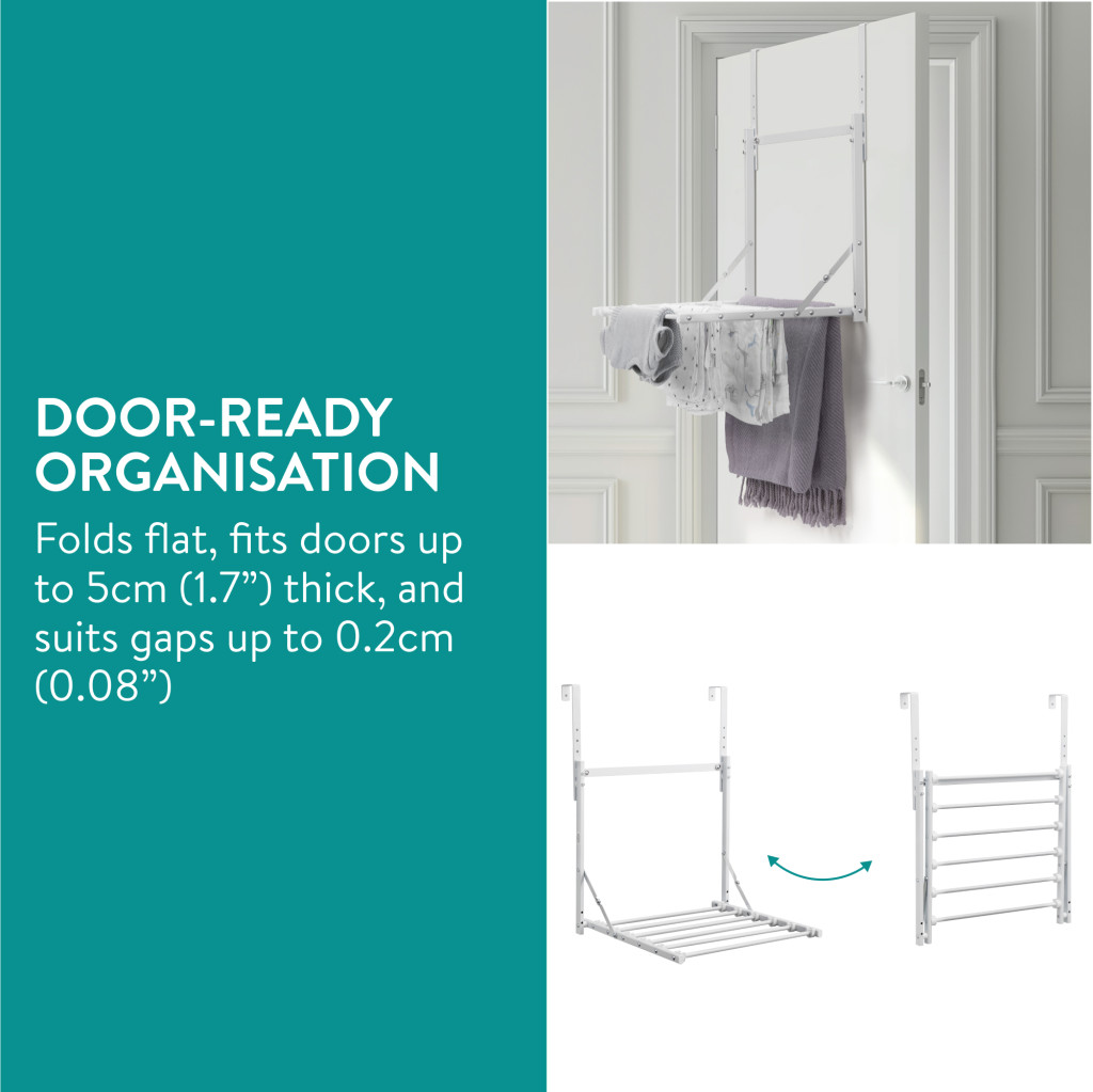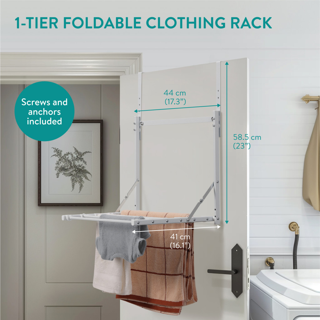 Suport uscator haine pliabil Navaris, peste usa, 1 nivel, 41x44x58.5 cm, capacitate 6 kg, negru, otel