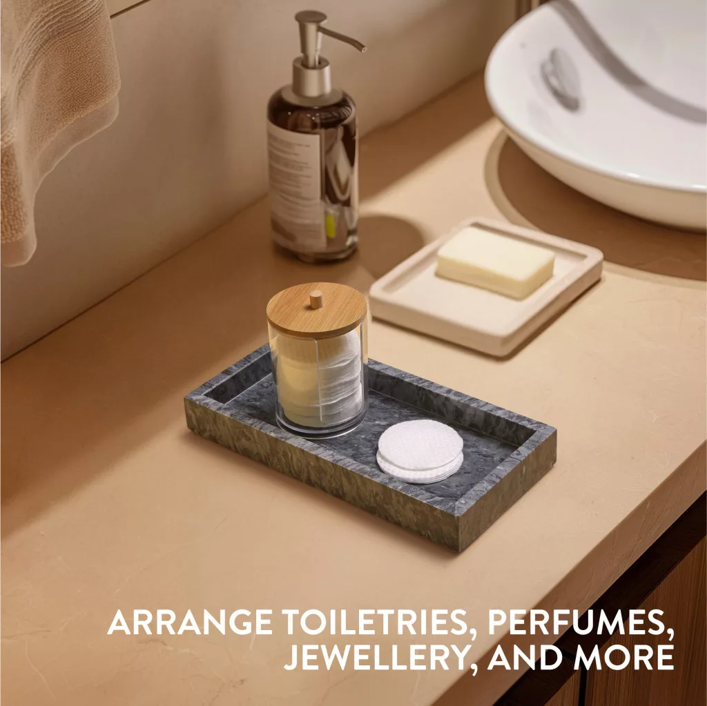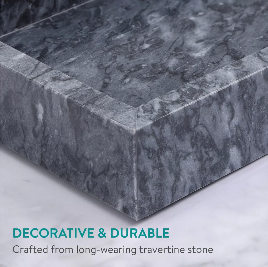 Tava vanity marmura Navaris, 25x12x3 cm, baie si living, marmura, negru, piatra naturala