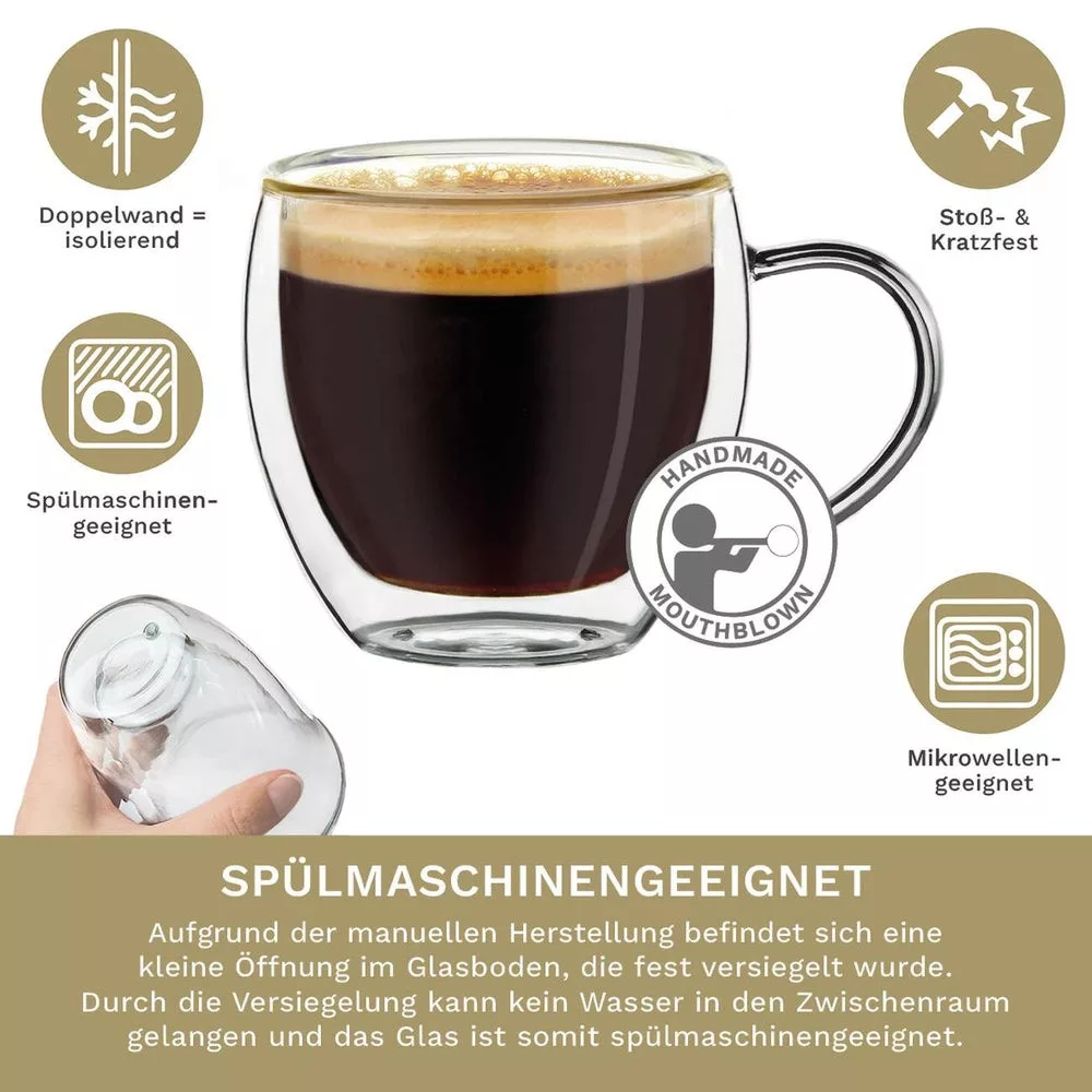 Set 6 cesti espresso termice Creano DG-BH, 100 ml, sticla borosilicata, perete dublu