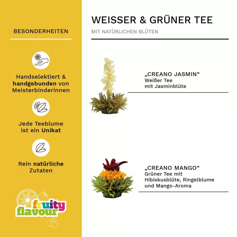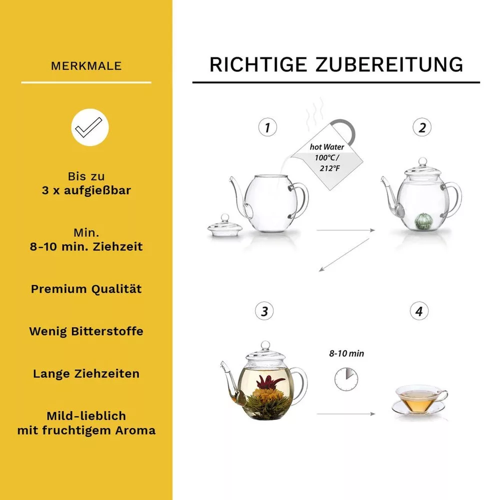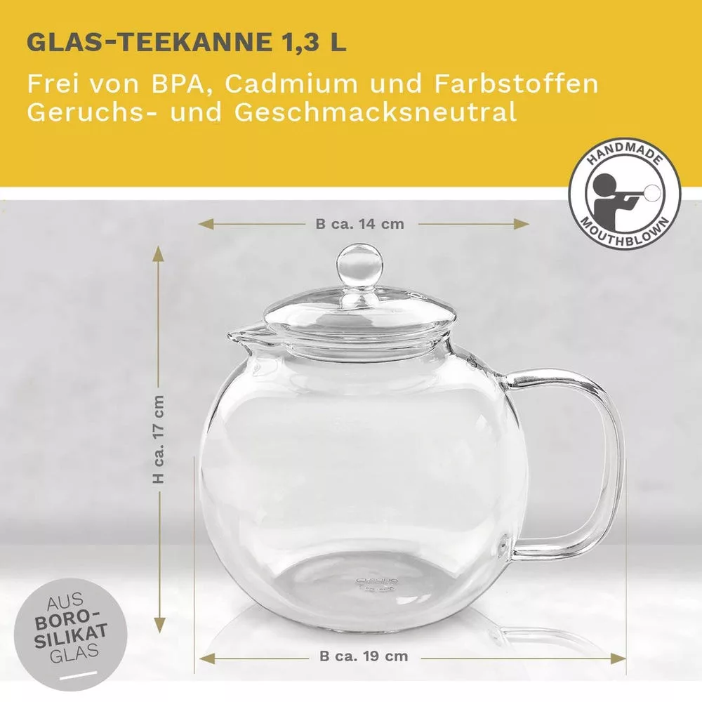 Ceainic din sticla Creano, 1,3 L, cu infuzor din inox, capac si 2 flori de ceai