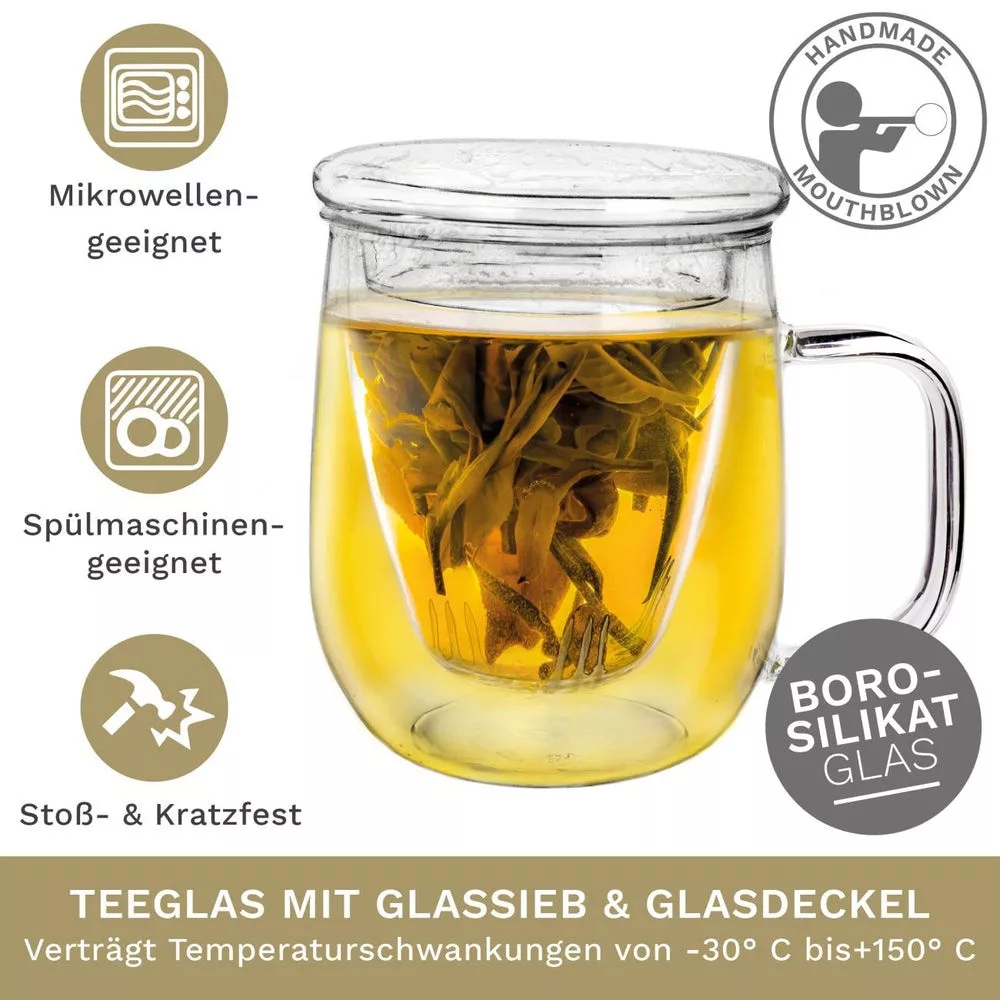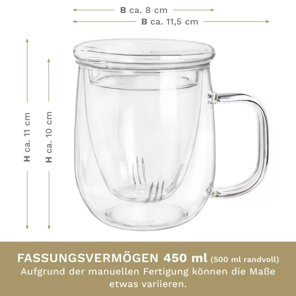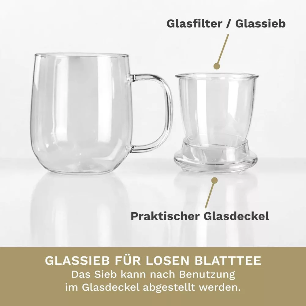Cana pentru ceai Creano, 450 ml, sticla borosilicata, cu infuzor si capac din sticla